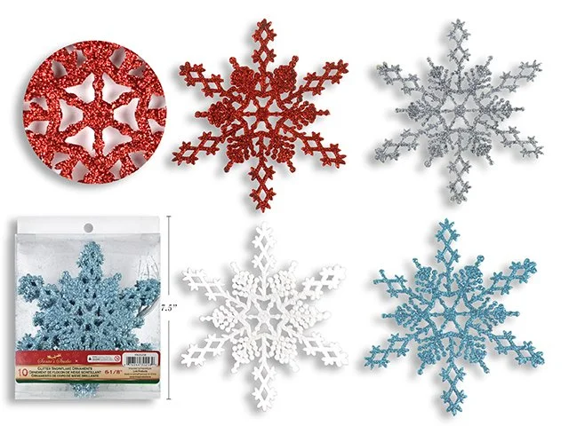 Shop Christmas › 10pk 6-1/8in Xmas Glitter Snowflake Ornament. 4 Cols:Blue /Silver /Red /White. PVC Box w/Label Image 1 of 1 10pk 6-1/8in Xmas Glitter Snowflake Ornament. 4 Cols:Blue /Silver /Red /White. PVC Box w/Label CA$3.99 Get notified by email when this product is in stock. Quantity: Add To Cart Added! You Might Also Like Deco L. 3"x3" Pillar Candle, Cinnamon Stick CA$3.99 6pk 4in x 4in Xmas Glitter Die-Cut Heart Ornament. 4 Asst. Colours CA$2.50 Deco N. Xmas 2pk Bow Décor, 4.75x5.5", Gold CA$2.50 Xmas B/O LED Terracotta House. 4.25in x 3.5in x 2-5/8in CA$7.99 Deco N. Xmas Hanging Ornament CA$2.50