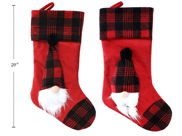 20in Red & Black Buffalo Plaid Plush Gnome Stocking. Boy Style Only. J-hook