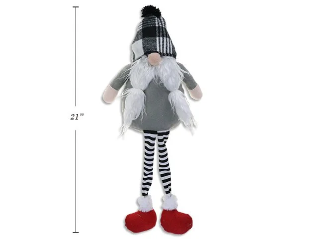 21in White & Black Buffalo Plaid Long Legged Plush Sitting Gnome. Girl Only