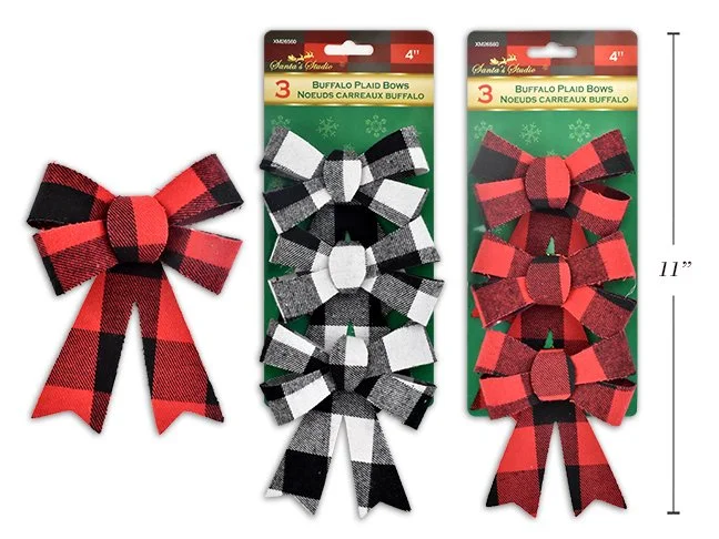 3pk 5.5in x 4in 5-Loop Buffalo Plaid Cotton PVC Bow