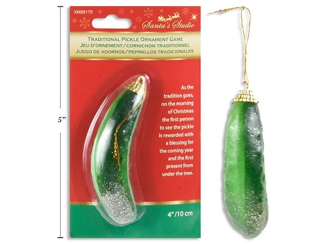 Shop Christmas › 4in Xmas Tradtional Pickle Ornament Game. b/c. Be the First to Find the Pickle in the Tree. Image 1 of 1 4in Xmas Tradtional Pickle Ornament Game. b/c. Be the First to Find the Pickle in the Tree. CA$2.99 Get notified by email when this product is in stock. Quantity: Add To Cart Added! You Might Also Like Deco L. Scented Votive Candle, Winter Wonderland CA$1.50 Deco L. 10" Metallic Silver Dinner Candle CA$1.99 Deco N. 9.5" Poinsettias w/Pot, 2col: Gold & Silver Sparkle CA$5.99 6pk 60mm Ornament Assortment - Red. 4 Asst. Styles PVC Box w/ Bow CA$3.99 Deco N. Xmas Hanging Ornament CA$2.50