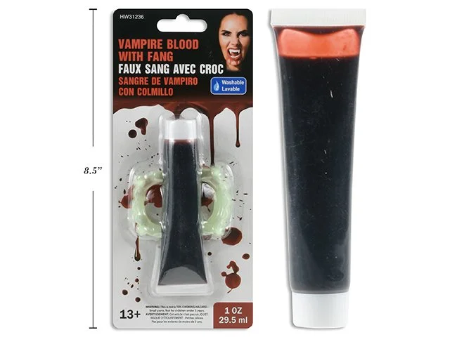 Set/2 1oz Vampire Blood w/Fang. Teeth Size: 2.75in(L) x 1-5/8in(W)